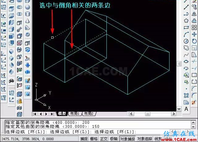下面就开始三维练习的第一题,其实是很简单,主要命令就是拉升 、倒角,再加几个辅助命令。