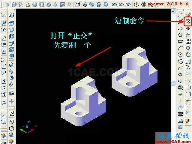 可以一起复制。注意,还是要打开“正交(也可以按F8)”,复制后的这2个,在以后转成的三视图里,