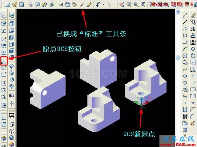 9、接下来点击一下“视图UCS”命令按钮,注意看看UCS坐标的变化。