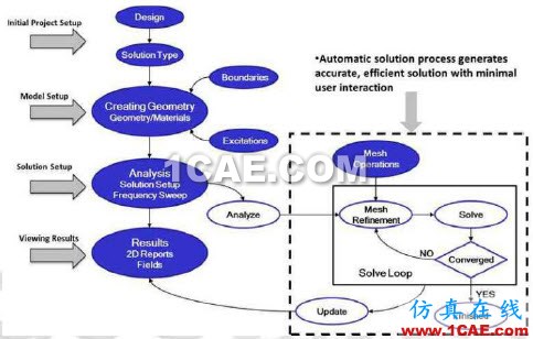 HFSS 为用户提供一个方便的三维绘图建模环境,既可以在其中画出分析对象的三维结构,输入材料参数,进行仿真分析, 也可以导入AutoCAD、ProE、STEP 、IGES 、ACIS等机械结构设计文件,或者通过AnsoftLinks 导入PCB或封装的局部模型,设置材料和边界条件后直接做仿真。仿真结果可以是坐标系下的辐射场量,也可以是三维或动画云圈。
