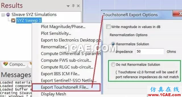不管原本在SIwave或HFSS的port设定是否有指定renormalize,最后要export时还可以再决定要不要overwrite renormalize