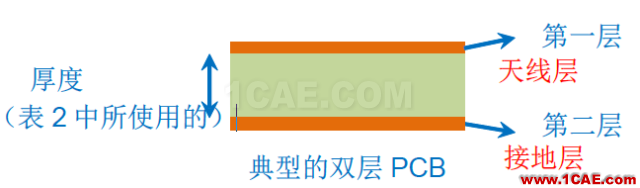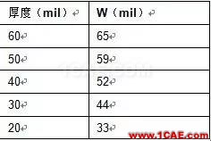 表2.FR4PCB的“W”值:天线层与相邻射频的接地层间的厚度。