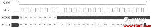 射频模块与MCU之间是通过SPI总线对模块进行配置,控制,并传送发射或接收的数据的,我们可以使用带SPI总线的触发和解码功能的数字示波器,比如DS4054或MSO4054对SPI总线进行测试,以便验证实际的通信信号是否正确。SPI规范所定义的读写操作的时序如下: