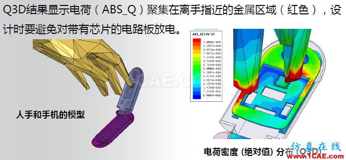通过在手和手机模型上设置不同的电位差来检查评估系统ESD风险: