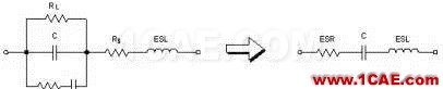 当在电源层与接地层之间连接一个电容器时,我们实际上是在对配置有一个串联谐振电路的电源进行加载,该电路的频率取决于代表了一个真实电容器等效电路的 R-L-C 组件。图 16 显示了一个初始等效电路的寄生组件,以及其向一个串联谐振电路的转化。