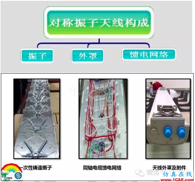说明:对称振子天线是有三部分构成,振子是天线信号的辐射体,馈电网络是把设备信号传送给振子的线路。外罩及附件体现天线的机械性能。