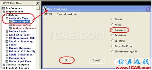 以下进行谐波分析:8. 再次进入 Solution,选择 harmonic analysis: Solution > New Analysis…