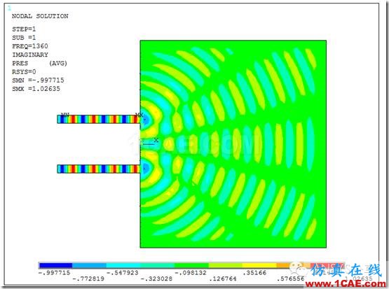 6. 本例子来自于ANSYS15声场分析的例子《13.9. Example: Radiation from Two Waveguides》,为方便讲解,对命令流进行了调整,并在后处理中加入了云图显示。