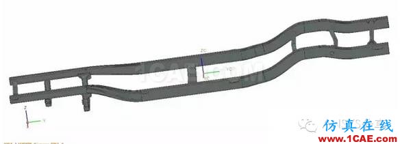 1) 通过UG等软件建立轻型汽车车架总成的三维几何数学模型