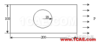 一个厚度为20mm的带孔矩形板受平面内张力,如下图所示。左边固定,右边受载荷p=20N/mm作用,求其变形情况