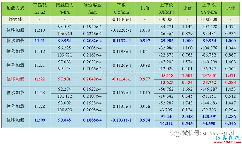 接触面单元是目标面单元的偶数倍时,具有很高的精度。不是偶数倍时,接触单元份数越多,精度越高。