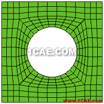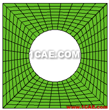 下面以一个最常见的O网格剖分例子来进行说明。原始几何为中心有孔的板,如图1所示。
