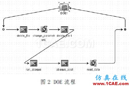 利用Isight搭建缸盖频响的DOE分析流程,流程图见图1,此流程分为4步。