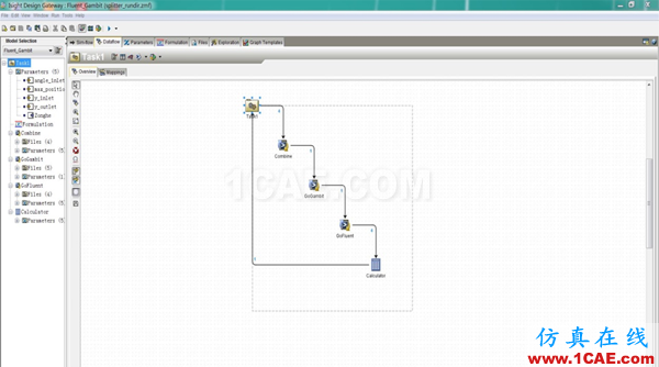 Isight界面可分为两部分,设计门户【Design Gateway】 和运行门户【Runtime gateway】,设计门户主要是做软件的集成以及流程的搭建,运行门户主要是执行设计门户所提供的仿真流程、执行模型以及做试验设计、优化等的后处理。设计门户在运行的时候会自动启动运行门户,对于设计门户保存的模型,运行模型也可以单独运行。