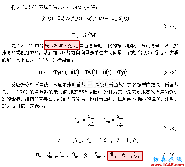 (1)反应谱分析实际上是一种拟动力分析方法。将结构在动力荷载下的复杂响应情况,分解为各阶振型独立的分项响应情况。