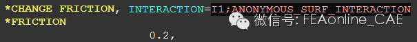 如上面所述,需在第三个分析步中考虑摩擦系数,因此需在第三个分析步中添加如下关键字