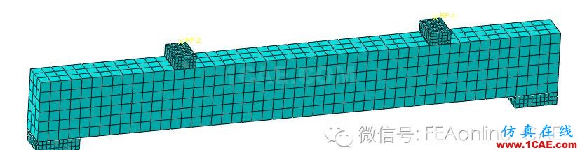钢砼简支梁结构主要为两部分,钢筋采用wire,建立箍筋和受拉受压筋,混凝土采用solid。因为在非线性材料收敛困难,避免集中点受力,在混凝土底部施加支撑块及受外载荷部位增加受力块。