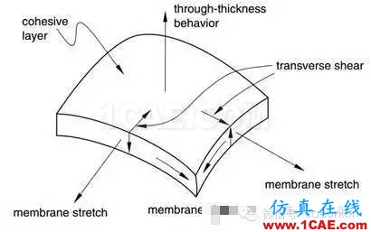 Cohesive element的中面虽然能够承受拉伸和剪切的应变,但并不能产生任何应力,因此,cohesive element 只能支持垂直于上下表面的牵引-分离破坏准则(Traction-separation separation laws)。
