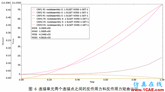 由于在模型中没有施加载荷,因此连接单元的反作用力和反作用力矩都近似为0。