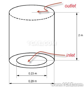 计算域几何如图1所示。采用如图所示的圆柱形容器。气泡从底部inlet入口进入,从outlet出口流出。几何尺寸如图所示。由于本例的轴对称特征,因此采用轴对称模型。注意:FLUENT的2D轴对称模型要求对称轴为x轴。计算域模型如图2所示。Axis沿着x轴方向,后边的重力加速度即沿着x轴负方向。划分网格,生成msh文件。