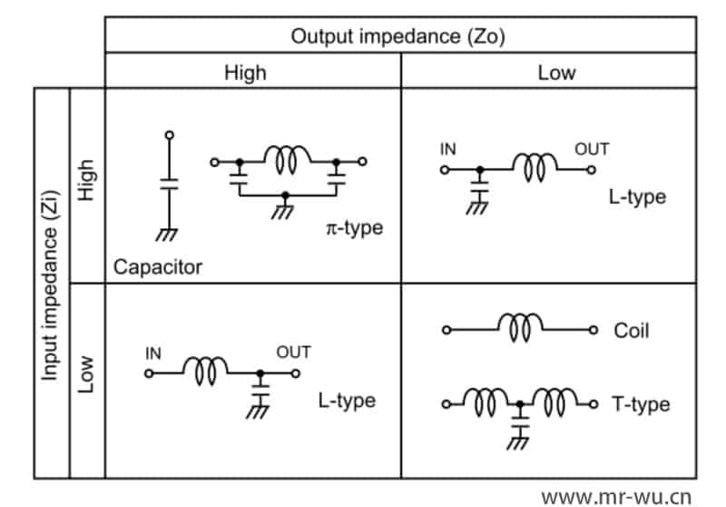 至於盡可能設計成 Low Pass Filter,原因是這樣可以抑制諧波。而 Low Pass Filter 的組合如下 :