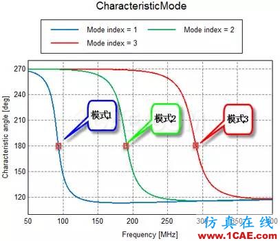 由于λn的值变化范围很大,不便于观察,工程上也采用Modal Significance (MS)和特征角Characteristic Angle(CA)表示天线各个模式的谐振情况: