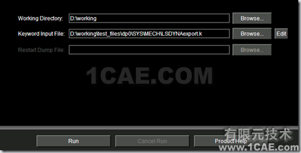 注意图中红色方框内部的设置。首先把仿真环境改变成LS-DYNA SOLVER,然后是许可改成ANSYS MULTIPHYSICS/LS-DYNA ,接着把工作目录修改到当前目录,再把关键字输入文件修改成(1.11)步中生成的文件