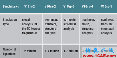 基准套件在两个极其相似的系统上采用ANSYS 16.0 运行:一个系统包含2 个Intel Xeon E5-2670(Sandy Bridge、2.6GHz、共16 个内核)处理器,另一个采用2 个 Intel Xeon E5-2697 v3(Haswell、2.6GHz、共28 个内核)处理器。采用1、2、4、 8 和16 个内核的基准套件运行总用时的几何平均值,可用于产生上表所示时间。对于 迭代求解器基准,Haswell 系统比E5 v2 系统平均快20%,而对于直接求解器基准, Haswell 系统比E5 v2 快40%。