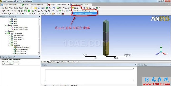 四、几何模型建完后,回到项目界面,点击NEW SIMULATTION进入仿真分析环境,