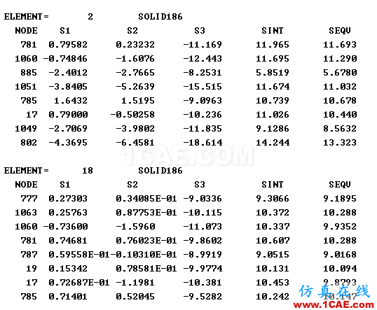当单元为186时查询两个挨着的单元应力解如图2所示: