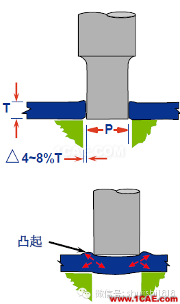 原则:1)必须保证凸包和母体之间有足够的材料连接,否则凸包易脱落。2)作为凸焊使用时凸点直径D>= 2t+0.7,并且大于1.8mm.