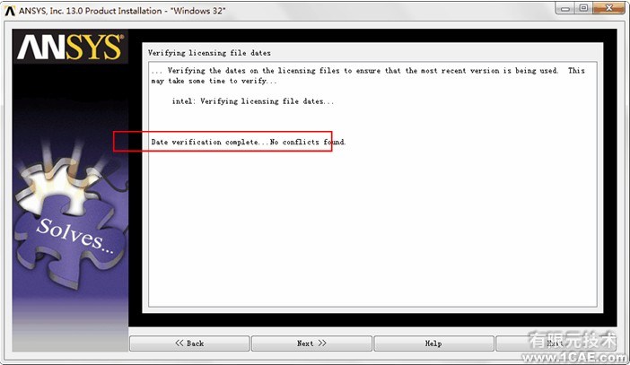 ANSYS验证licensing信息,出现No conflicts found之后,点击Next。