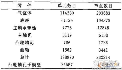 有限元模型采用10节点四面体单元,各零部件的单元数目和节点数目如表1所示。