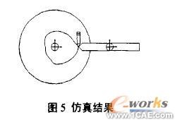 模型仿真运动时,各部件必须刚好完成1个周期的运动,由表l所示顶杆1个循环的时间为4秒,因此要把仿真模拟时间设置为4秒,并把凸轮的转动速度改为90deg/sec,这样凸轮运行4秒后也刚好是1个循环;在结果分析项设置要求输出顶杆顶点对运动轨迹,即凸轮轮廓曲线。仿真运行后得如图5所示结果。