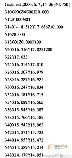 将图10导人UG环境。根据加工要求,把已经生成的刀具轨迹转化生成G代码数据文件,即CNC数控程序。部分G代码如下。