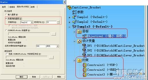 COSMOSWorks在完成强度、模态、屈曲、热分析后可以直接进行多学科约束的优化分析;