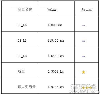 变量设置完毕,再运行Ansys Solusion后,可以开始定义设计目标,如下表所示: