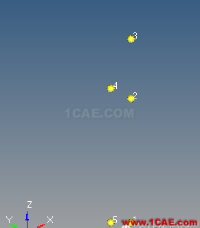 通过圆心和半径的方式创建,指定方向的时候用x-axis,表示YZ平面内创建。圆心为节点2,半径为5.