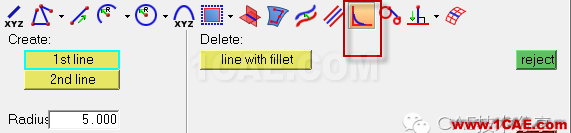 再之后,生成倒角,通过Geom面板的line,如图20所示,注意需要先输入半径,可以勾选Trim original lines。