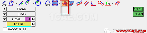 再然后,通过对称,将小圆向下复制,通过Tool面板下的reflect,如图12所示,z-axis表示沿着XY平面对称,并且需要指定平面的一个基点。同时依然采用duplicate的方式完成。