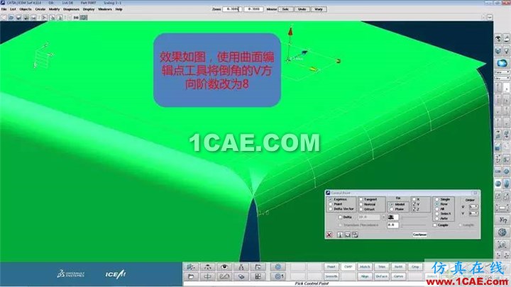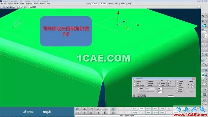 很多人在练习ICEM Surf三边圆角时,并没有达到想要的连续效果,教程上也不是很详细,我们的工程师学习一段时间CATIA ICEM后,再用ICEM Surf做了一遍倒角,终于得到了想要的连续效果,现在拿来和大家分享一下。