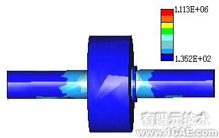 以常见的轴、键、转轮的装配体为例。转轮与键是过盈配合装配。在轴上施加约束,并在转轮上施加载荷,如图1所示。
