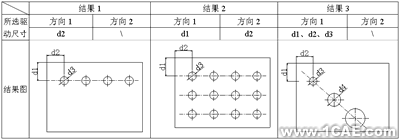 下面以平板开孔的阵列特征为例,其不同的驱动尺寸选取方式将产生的不同的结果如表1所示。