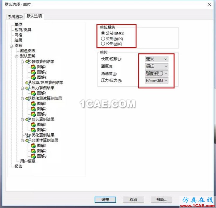 在这个地方, 笔者一般选用公制,同时, 选择毫毛、秒、兆帕作为单位。