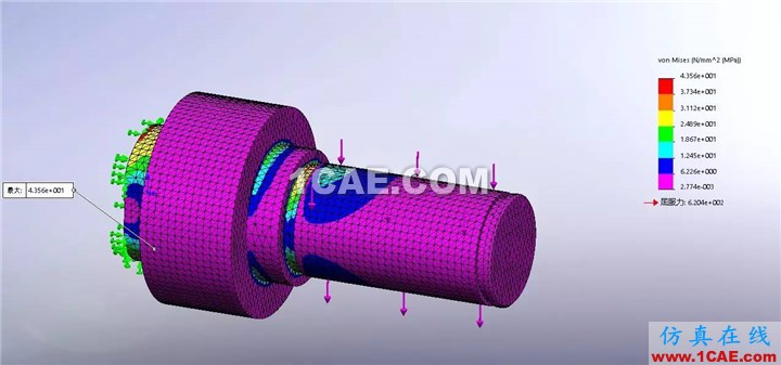 5、结果的显示情况。正常来说,我们都希望看到最大应力处,所以,在这里笔者勾选了最大值注解。