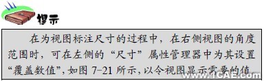 “尺寸类型”卷展栏:选中此卷展栏中的“真实”单选钮,在视图中标注的尺寸为模型的真实值,如选择“预测”按钮,则在模型中标注的尺寸为模型到当前平面的投影尺寸,此功能在轴测图中有明显区别。