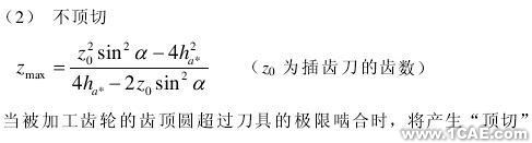 (2) 当正变位系数 x 过大(特别是齿数 z较少时)就可能出现齿顶过薄,或者出现顶切现象,如图 5 所示。其 z=16,m 和 x 与图 4(a)相同,但齿形不同,其顶切较明显;